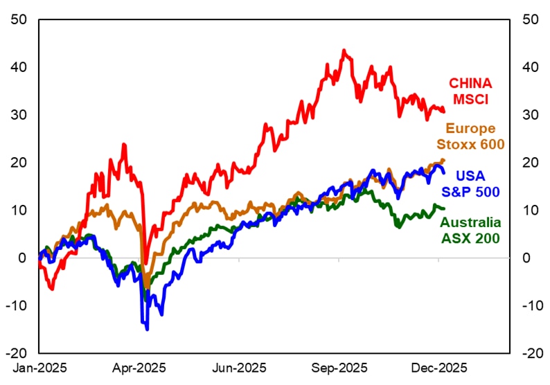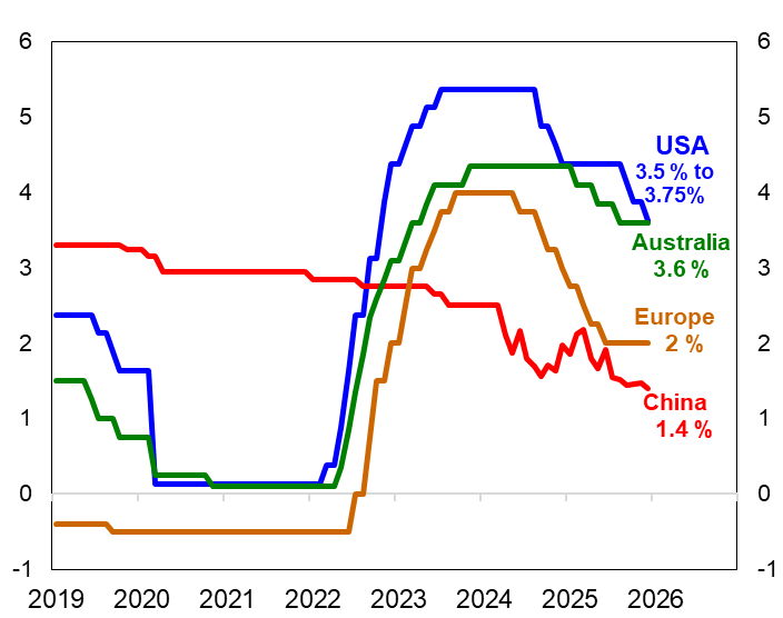 Global economic activity has been ‘multi-speed’ in the past year. The US economy has been the key source of strength. American technology companies have ramped up business investment in a spectrum of assets including advanced computer chips and large data centres for information storage. Notably, the US economy recorded annual gross domestic product (GDP) economic growth of 2.3% in the year to September 2025 compared to potential growth estimates of around 1.8%. Consumer spending has been solid given the benefit of Wall Street’s gains as well as Congress making permanent the large income tax cuts from President Trump’s first term in the White House back in 2017. Most American consumers have even shrugged off the higher prices imposed by President Trump’s tariff increases but the impact is more severe for low-income families.