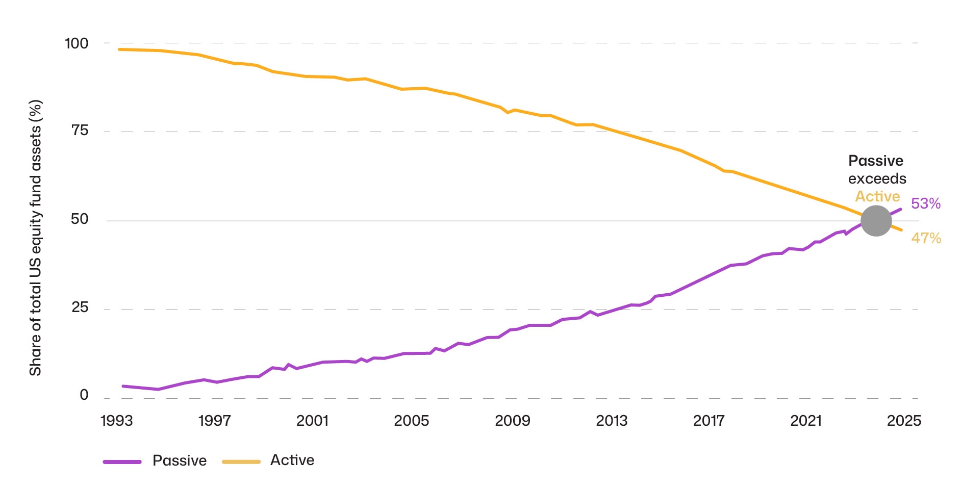 For both retail and institutional investors, passive strategies remain a cornerstone due to their low costs and broad diversification. However, heavy reliance on them increases the risk of sharper drawdowns in highly concentrated markets. In more volatile environments, active management can become more attractive, particularly by focusing on under-owned stocks to reduce concentration risk.